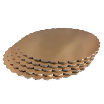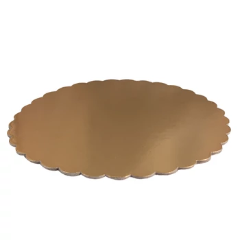 Csipkézett arany színű vastag kerek tortaalátét karton, 30cm, 5 darab - Lumea
