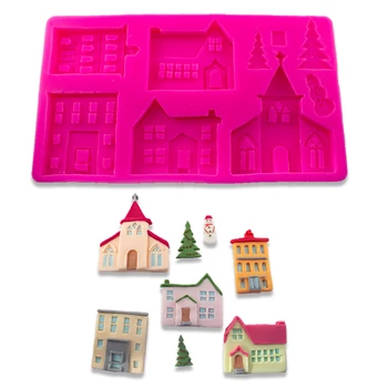 Karácsonyi épületek, fák és hóember szilikon forma - Lumea