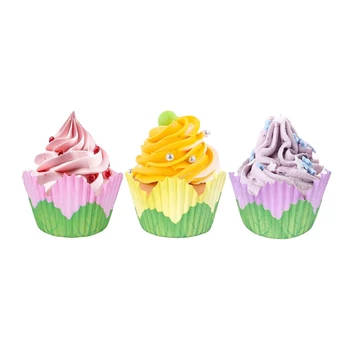 Virág alakú Lila, Rózsaszín, Sárga muffin papírok, 72 db. - Wilton